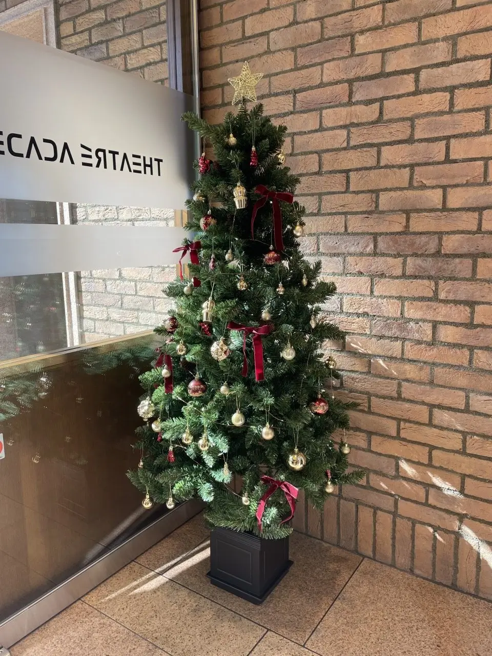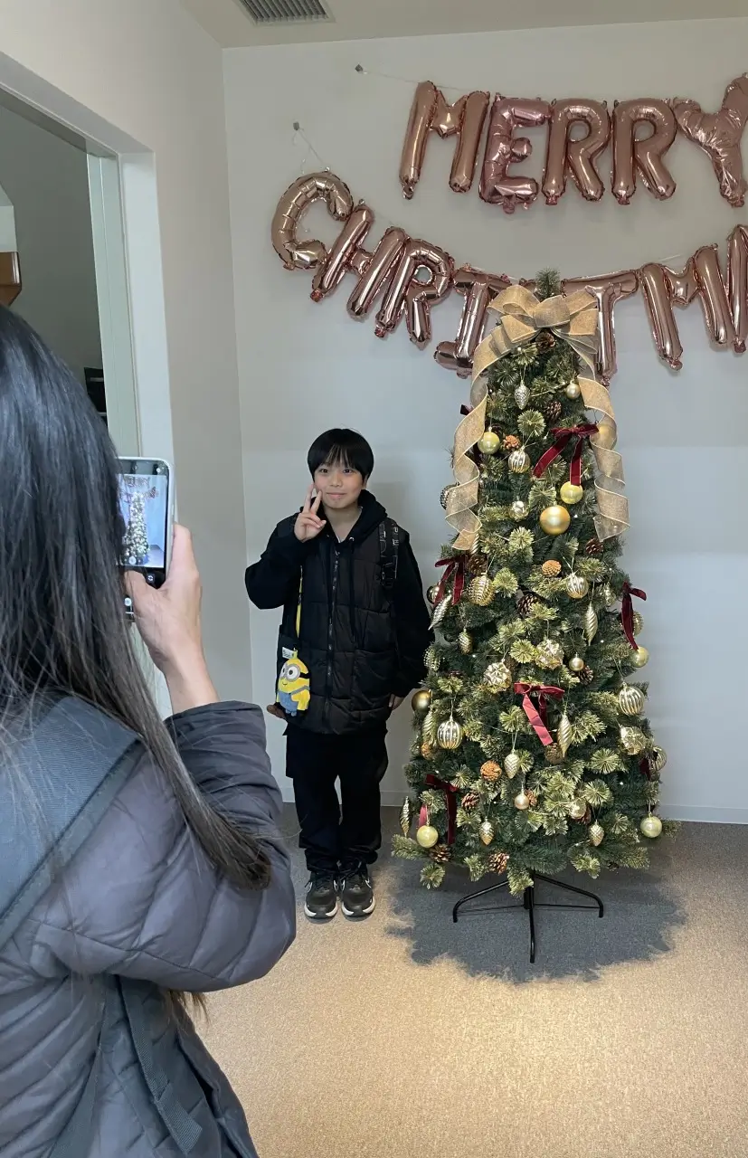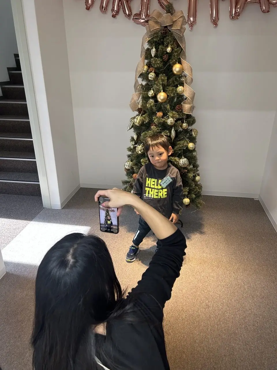ふしぎなことに、このクリスマスツリーのまえでしゃしんをとると、ツリーがすこしずつのびていくのです。