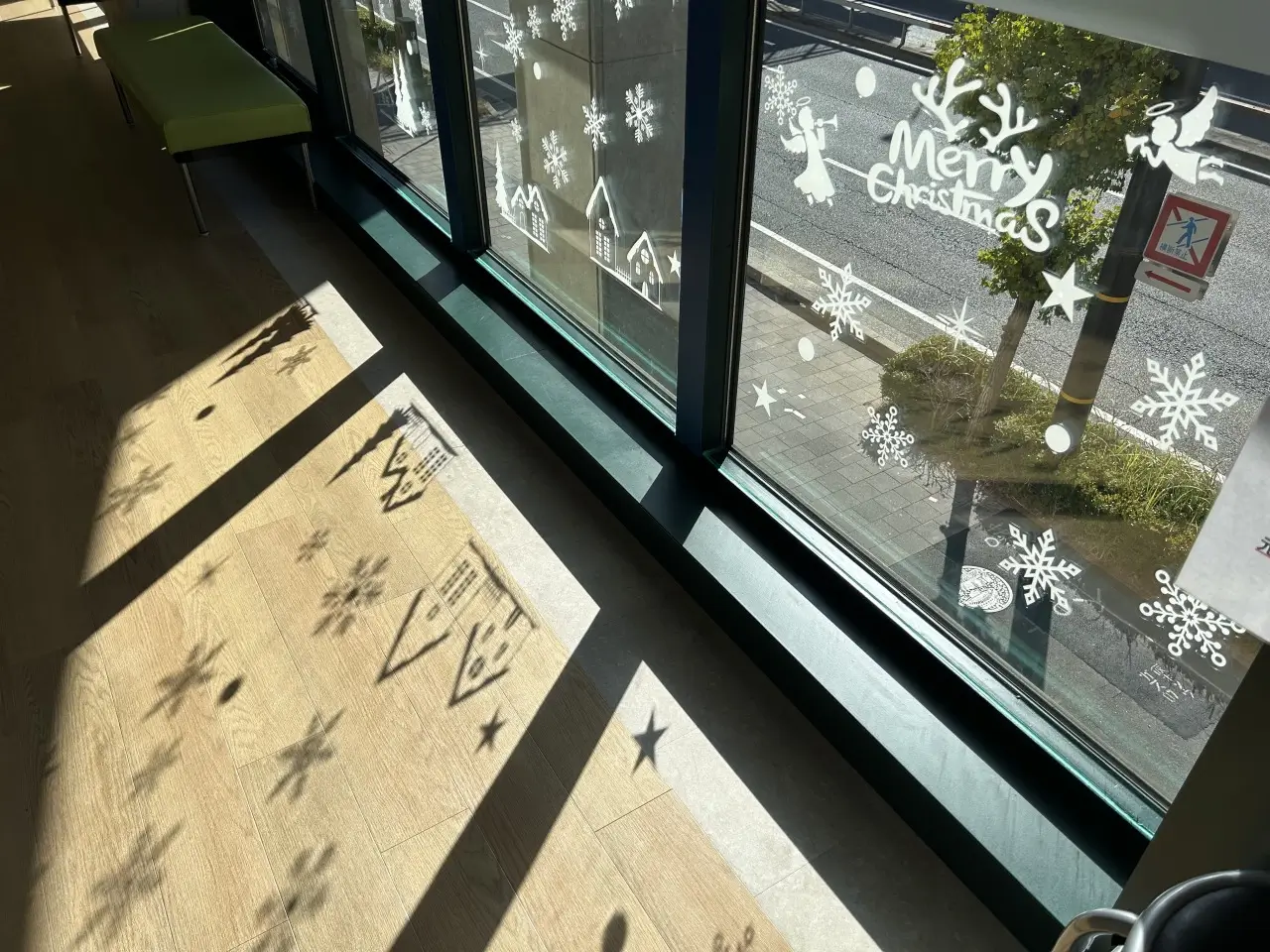 2かいのまどには、スタッフ・はあちゅうがかげまでけいさんしてシールをはりました。