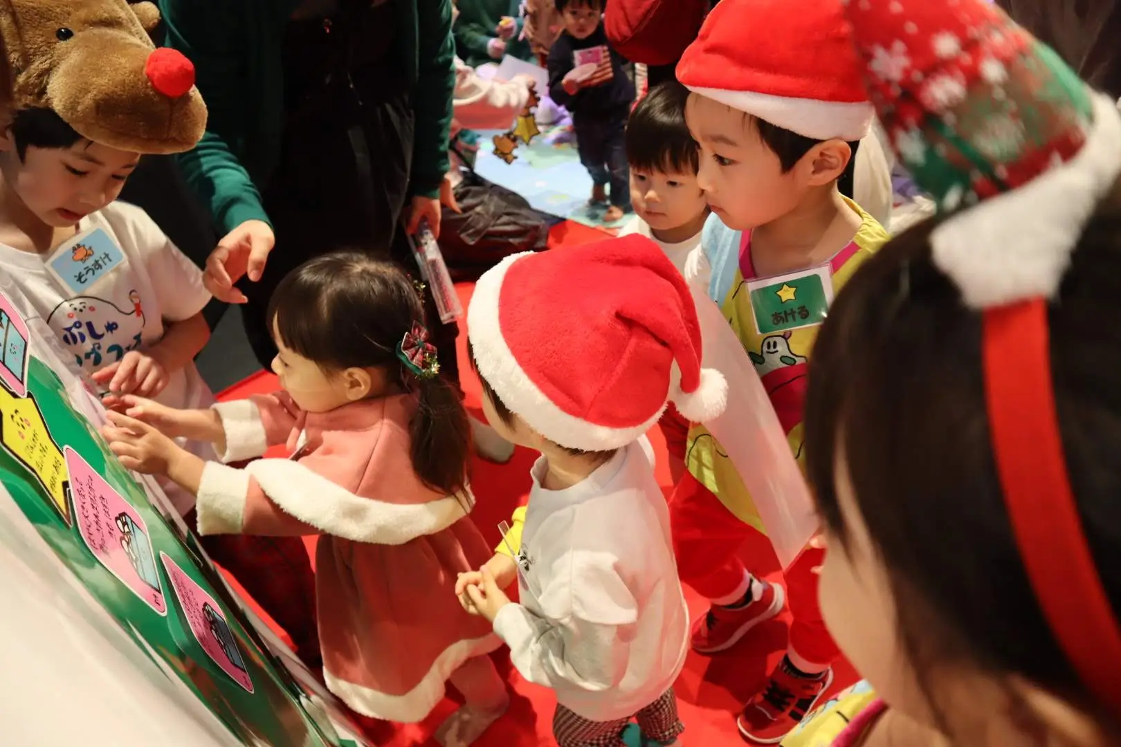 みんなでサンタさんへの願い事をクリスマスツリーに貼ったよ!