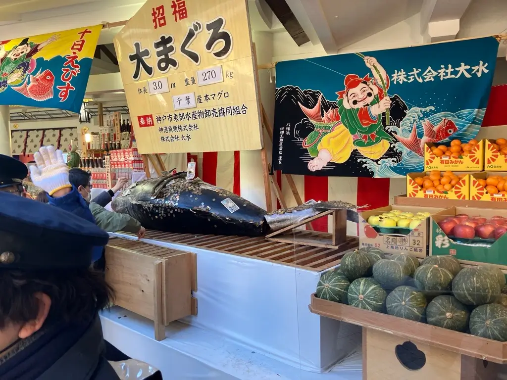 これは「招福大まぐろ」といって、1月9日からの十日えびすの間、商売繁盛と大漁を願うとして飾られ、