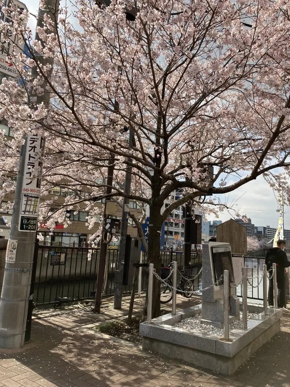 日ノ出町の校舎前には、川があり桜がきれいに咲いていました。