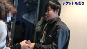 そして開場。受付でチケット半券のお預かり、いわゆる「もぎり」を体験しました。